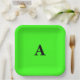 Neon Green Monogram Initial White Custom Cute 2023 Paper Plate