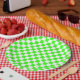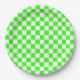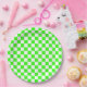 Neon Green White Chequered Chequerboard Vintage Paper Plate