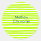 Neon green yellow retro stripes add name cityplace classic round sticker
