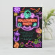 This spooky-fun invitation features a witch, cauldron, witches hat, spider web, bats, skeleton skull, and pumpkin jack o lantern. The words "Halloween Costume Party" are written in a fun and festive font. It's the perfect way to invite your friends to a spooky-sweet Halloween party where they can come dressed up.