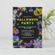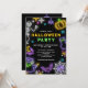 Halloween Party Invitation. Get ready for some spooky fun with this neon Halloween costume party invitation featuring neon skeleton, pumpkin, spider, wicked witch, spiders web and bats.