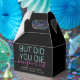 Personalised Bachelorette Party or Birthday Celebration Hangover Relief Kit with funny "But did you die" quote and custom text with the bride's name, party destination location, and date in bright neon blue and pink and black. All colours, fonts and text can be edited to match your party.