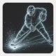 A striking neon sketch of a hockey player in motion against a dark background captures the energy and speed of the athlete with detailed lines and sparks flying as the skate hits the ice.