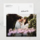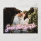 This save the date features neon lettering over a horizontal photo. This template also has a backer design with space for details like your wedding website. See other items in this collection for other colorways, product types like magnets and 5"x7" cards, and a vertical version!