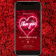 This Valentine's Day invitation design is a visually stunning blend of romance and modern elegance. The background features a vibrant wall of deep red roses, creating a rich and luxurious texture that symbolises love and passion. In the middle of the rose-covered wall, there