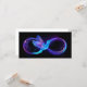 Glowing, purple infinity symbol with flying, luminous, blue hummingbird on black background. Neon.