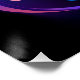 Glowing, purple infinity symbol with flying, luminous, blue hummingbird on black background. Neon.