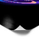 Glowing, purple infinity symbol with flying, luminous, blue hummingbird on black background. Neon.