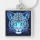 Neon Jaguar Head Outline on Dark Background Key Ring