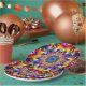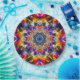 A dazzling kaleidoscope design radiates vibrant colours and intricate geometric patterns drawing the eye towards a captivating central point
