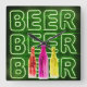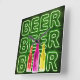 Square wall clock printed with neon look bar sign. The design has coloured beer bottles and is lettered with the word BEER in LED strip lighting. It has a colour palette of green, red, pink and yellow. Please browse our store for alternative colorways.