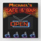 Neon Light BAR CAFE OPen Coffee Cups Personalised Square Wall Clock