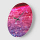 Neon light: empty brick wall. large clock