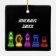 This stunning Chess themed Christmas ornament features a line up of Chess pieces to include, in order from left to right, the King, knight, bishop, rook and a pawn with the word Chess in a futuristic font. Personalise the back with a name and year!