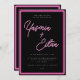Neon Lights Hot Pink Black QR Code Wedding Invitation