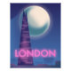 Neon London travel poster with a full moon over the famous London Skyline.