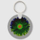 This pretty keychain features a photograph of a marigold flower that has been manipulated to create a beautiful neon flower with a bright red and green centre surrounded by petals with subtle shades of yellow, green and blue. The flower sits on a slate grey background to emphasize the bright centre and create a moody atmosphere.