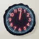 A neon clock glows brightly against a dark background with its hands pointing to midnight