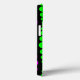 This phone case has a mid-century modern design of neon pink, green, and blue rounded rectangles in increasing and decreasing size running vertically on a field of black.