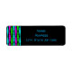 These return address labels have a mid-century modern design of neon pink, green, and blue rounded rectangles in increasing and decreasing size running vertically on a field of black.