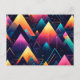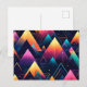 A vibrant and abstract geometric pattern featuring overlapping triangles in a kaleidoscope of neon colours. The triangles resemble jagged mountain peaks, creating a dynamic and energetic composition against a dark background. The image is filled with bright hues, including pink, orange, yellow, blue, and purple, creating a visually stimulating and eye-catching design
