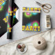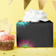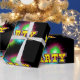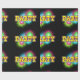 Multi coloured star burst or splatters and the word PARTY printed on black gift wrap. There is another version of this print that dies not has the word party and the splatters are much larger.