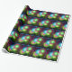 Multi coloured star burst or splatters printed on black gift wrap. There is another version of this print that is larger.