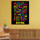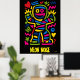 Bright neon mummy poster wrapped in fluorescent stripes of pink, blue, yellow, and green. A pop art design from the Neon Noise Collection, perfect for Halloween parties, kids’ rooms, or vibrant modern wall decor.