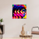 Experience a masterclass in colour and contrast with this captivating pop-surrealist masterpiece. This high-energy piece features a striking triple-panel perspective, blending deep, rich tones with a neon spectrum of electric pinks, glowing yellows, and cool cyans.