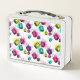 This is a standard metal lunchbox that appears to work just fine. We designed this box ourselves with an uploaded photo and custom text on the front and back. It looks absolutely beautiful except the front of the lunchbox is not centered like it shows in the photo. The print borders don't align with the inset flat part of the box where the preview photo online showed it perfectly centered in there. The back looks nice and centered though.