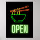 Neon green "Open" text with neon Asian style noodle bowl silhouette on black background makes this a great design for personal and a variety of restaurants and eateries