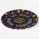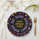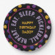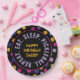 Neon pink, yellow and purple on black pickleball pattern, custom text Paper Plate with custom name. Perfect as a gift for pickleball player. Eat, Sleep. Pickleball. Repeat.