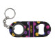 Neon pink, yellow and purple on black pickleball pattern, custom text Keychain Bottle Opener. Perfect as a gift for pickleball player. Customisable text on both sides