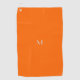Golf towel with neon orange solid colour background and white font .Simple and trendy design by Alma Wad .Personalise it with your monogram now ..