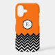 Cute trendy modern chic girly custom monogram case for your cell phone, ipad and more in a neon orange color which can be changed by selecting a different color. The bottom portion of this case is designed with a black and white chevron zigzag image that can be enlarged, reduced and moved around by clicking "customize it" and selecting the chevron image then use the directional tools to move it around. Change the monogram with a different letter or initials.