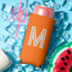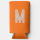 Seltzer Can Cooler with a neon orange solid colour background and bold white font Simple and trendy design by Alma Wad. Personalise it with your monogram now.