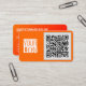 Business card template with bright neon orange solid colour background ,QR code and hand lettering style white fonts .Simple and trendy design by Alma Wad .Personalise both sides now .It comes 100 in a pack .