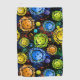 A fun artistic design featuring a pattern of pickleballs in neon shades of green, blue, yellow and orange, all on a contrasting black background. Makes a great gift for any pickleball enthusiast.