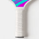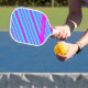 Neon Pink and Blue Stripes Trendy Stylish Name Pickleball Paddle