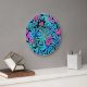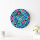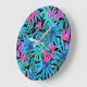 Neon Pink and Blue Tropical Plant Pattern Large Clock