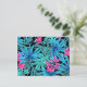 Neon Pink and Blue Tropical Plant Pattern Postcard