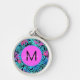 Neon Pink Blue Tropical Plant Pattern Personalised Key Ring