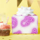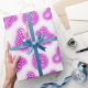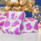 A seamless pattern of Neon Pink Christmas elements, including Christmas Trees, Bells, Stockings and Ornaments on a White background