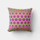 Neon pink abstract circles on a bright green background adorn this 70's inspired design