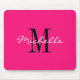 Neon pink elegant custom name monogram computer mouse pad