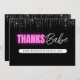Neon Pink Glam Thank You Card. With its bold neon pink colour and glamourous design, this card is sure to make a statement.