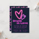 Neon Pink Hearts Drunk in Love Wedding Shower Invitation