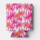 This customisable can cooler features a pattern of neon pink and orange palm trees.