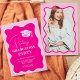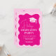 Graduation party planning just got a whole lot prettier with our Neon pink retro wavy frame photo graduation invitation. Get ready to celebrate in style! Our grad invitation features a modern brush script font on a wavy squiggly frame with cap topper. All the colours are editable. Perfect Class of 2024 celebration! Add your photo at the back.