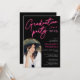 Neon pink sign script fun graduation photo arch invitation